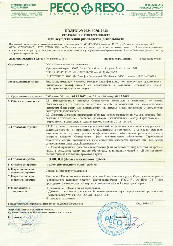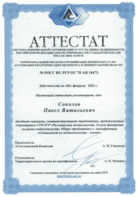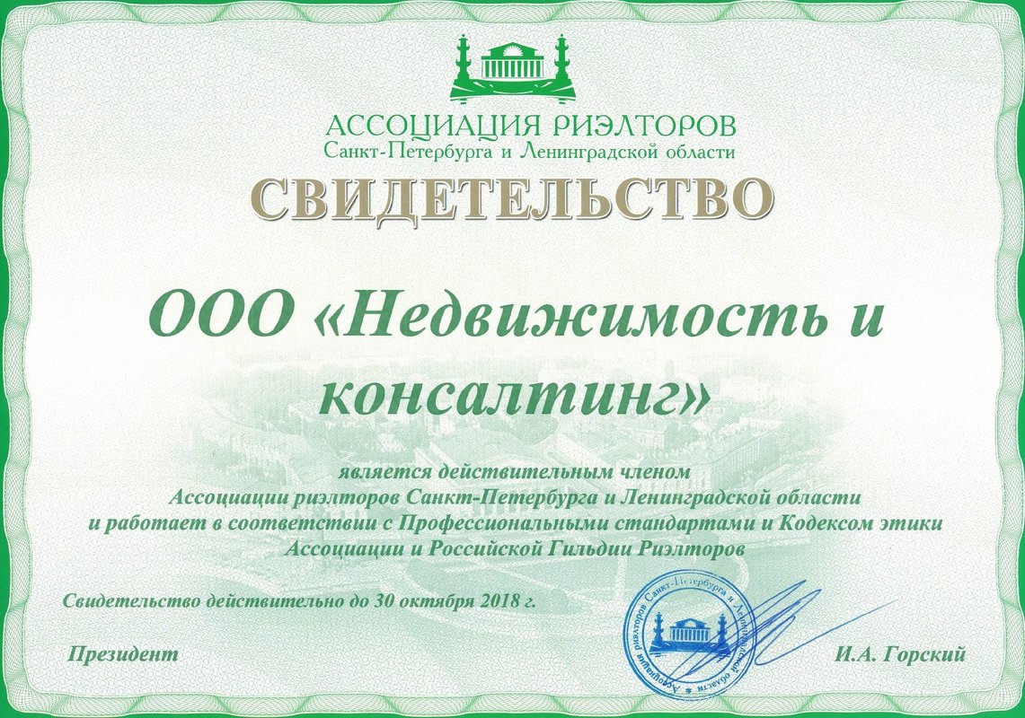 Управляющий партнер. Действующий член ассоциации риэлторов Санкт-Петербурга и Ленинградской области (аттестат № РОСС RU РГР ОС 78 БН 02911). Профессиональная ответственность застрахована.